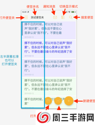 打开便签,首先进入的就是首页,下图是首页的主要按钮功能说明。