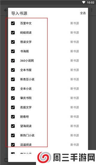 5、成功读取到了书源,用户可以根据需求选择导入;