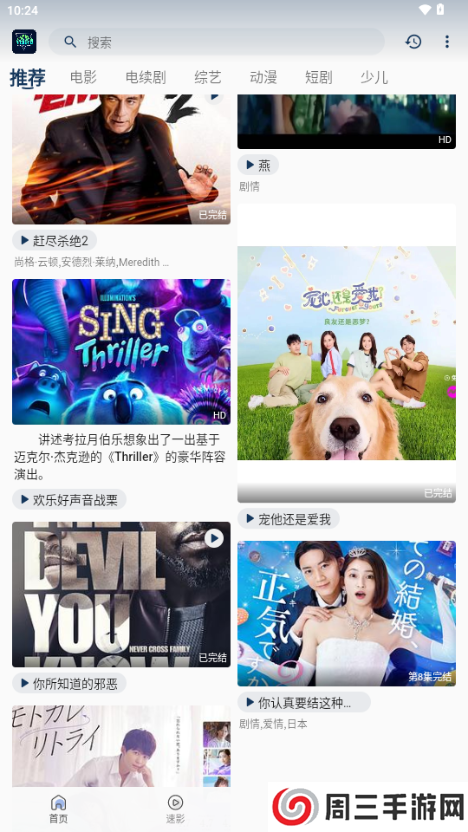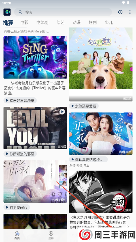 5.这里还有影视推荐功能,通过刷短视频的形式获取一些短篇内容;