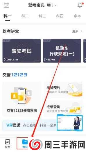 2、点击下方的“考试”