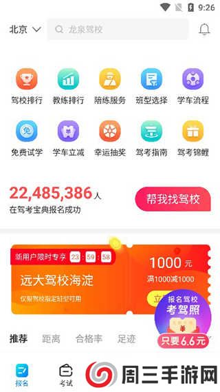 3、在主界面当中提供了丰富的功能,包括驾校排行、教练排行、班型选择等等;