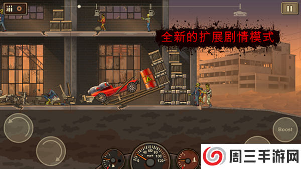 1. 驾驶操作:玩家通过虚拟按键控制战车的行驶方向、速度和刹车,同时需要灵活躲避路上的障碍和僵尸的袭击。