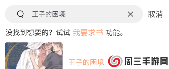 2.输入漫画名称(例如:王子的困境),点击搜索