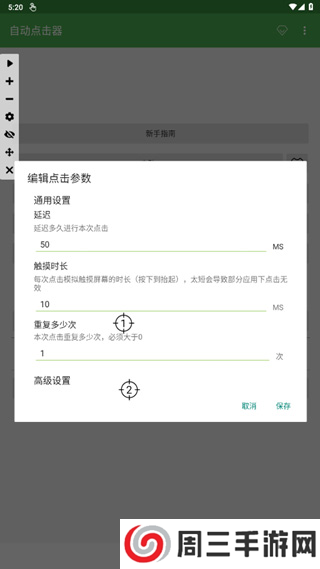 1、打开自动连点器,然后长按屏幕中间的位置点。
