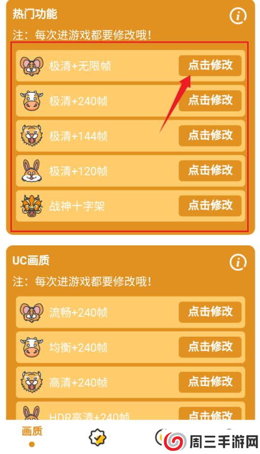 3.此外软件中还支持多种画质模式的一键修改,【点击修改】即可完成。