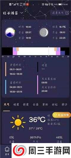 今日模块:日出日落,天气细节,空气质量,健康与生活指数,降雨几率,风况和雷达图。