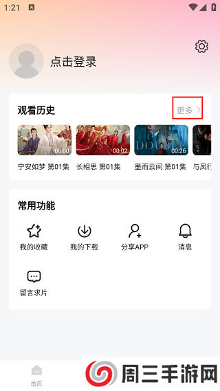 2、切换到个人中心界面之后,可以看到上方中的“观看历史”一栏,点击右侧的“更多”。
