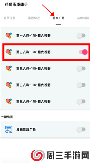 4.切换到超大广角功能,选择第三人称-170-超大视野功能开启