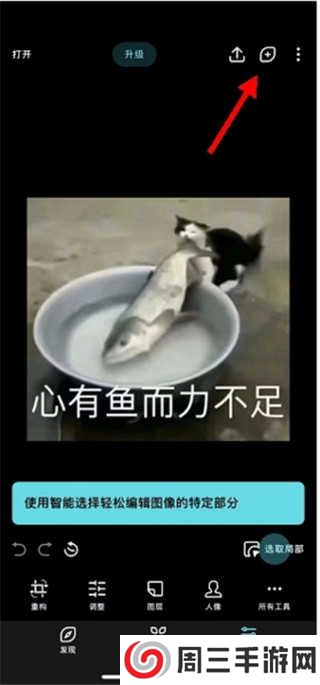1、下载安装本站提供的泼辣修图免费破解版软件,先选择右上角的三点按钮;