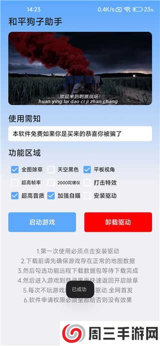 3.下载好驱动后,再勾选需要开启的功能后,点击启动游戏即可修改成功