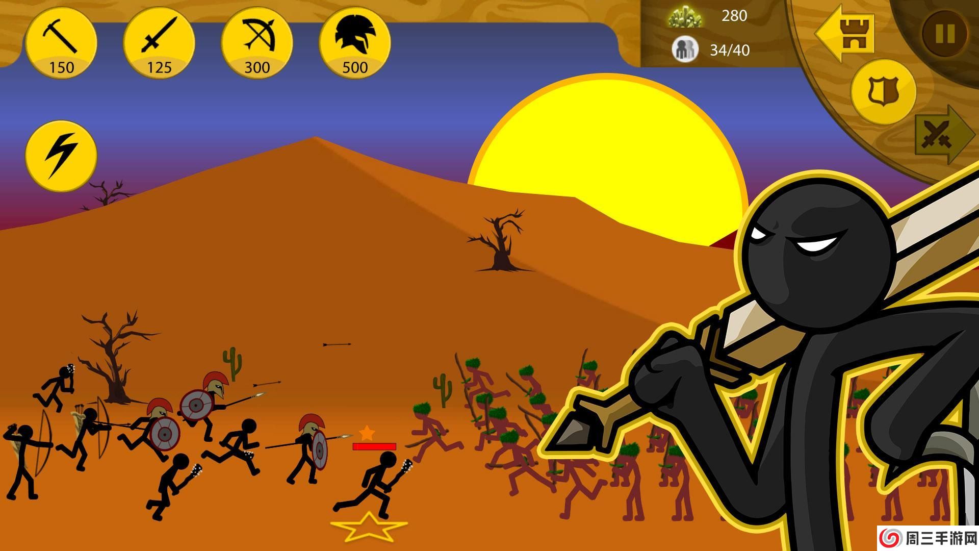 1. 丰富的火柴人兵种:游戏中包含弓箭手、战士、法师等多种火柴人兵种,每种兵种都有其独特的技能和战斗方式,玩家可以根据战斗需要灵活选择。