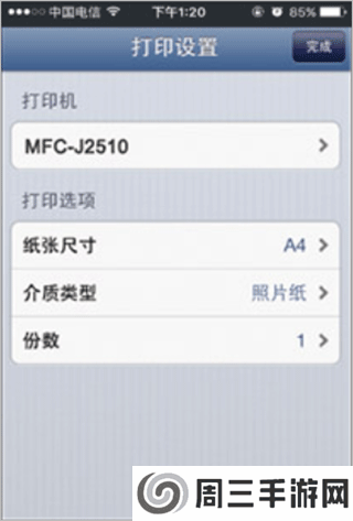3、选择打印机并确定纸张的尺寸、纸张类型、打印页数,然后点击完成;