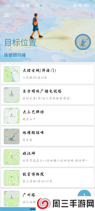 1、打开摩尼定位app,进入软件后会列出常用位置信息,选择你想要定位的目标位置,点击右下角的“+”按钮也可以自行选择位置;