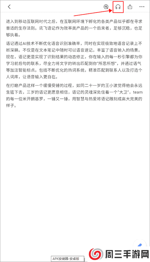 2、进入文本界面后,点击上方的“耳机”图标,就能听小说啦。