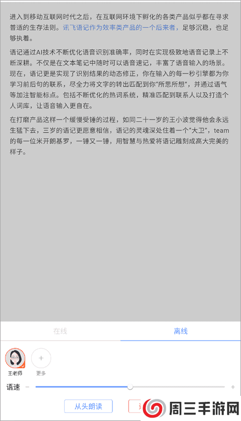 3、你还可以点击右下角的暂停切换不同的切换朗读声音、以及朗读语速哦。