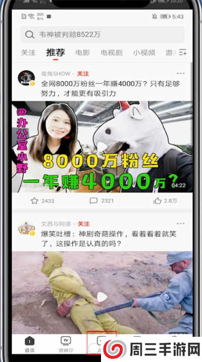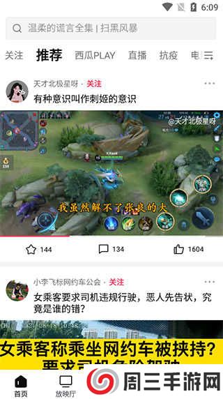 2、首页页面,可以看到很多创作领域的优质视频,游戏直播、新闻资讯等,视频内容很丰富;