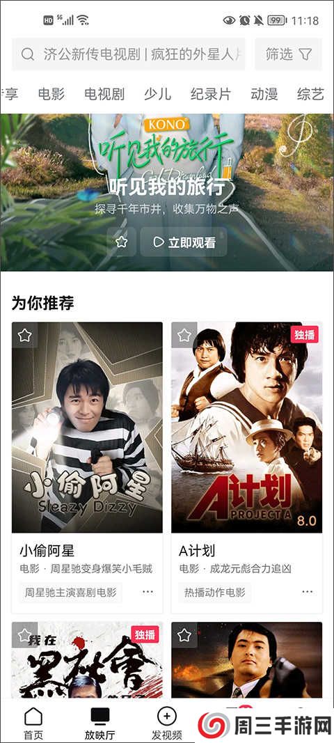 1、首先打开软件,进入到放映厅页面,这里可以免费观看电影、电视剧、少儿等等。