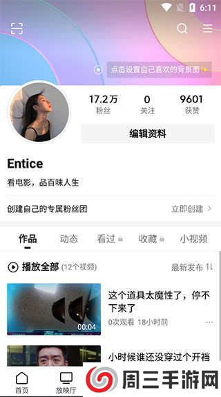 6、我的页面,查看账号信息、个人作品、还可以创建专属粉丝团。