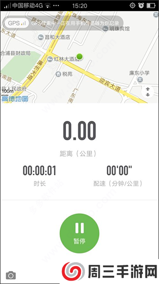 5、可以看到运动轨迹图是不带距离的,点击右上方的更多图标