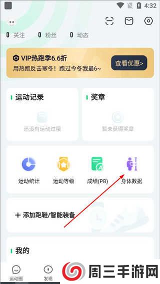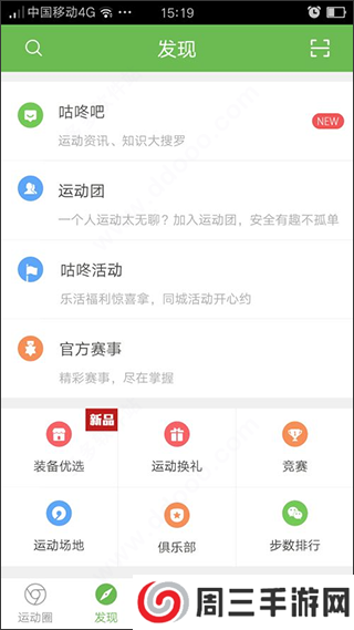 5、我们可以点击软件主界面选项中的“发现”和“运动圈”这两个地方,不但可以增长见识,开阔视野,看到许多运动的趣事还可以多与一些运动达人或者周边的运动朋友进行交流,提升自我,并且双方能够结交好友,这也是十分难得的一件事情。