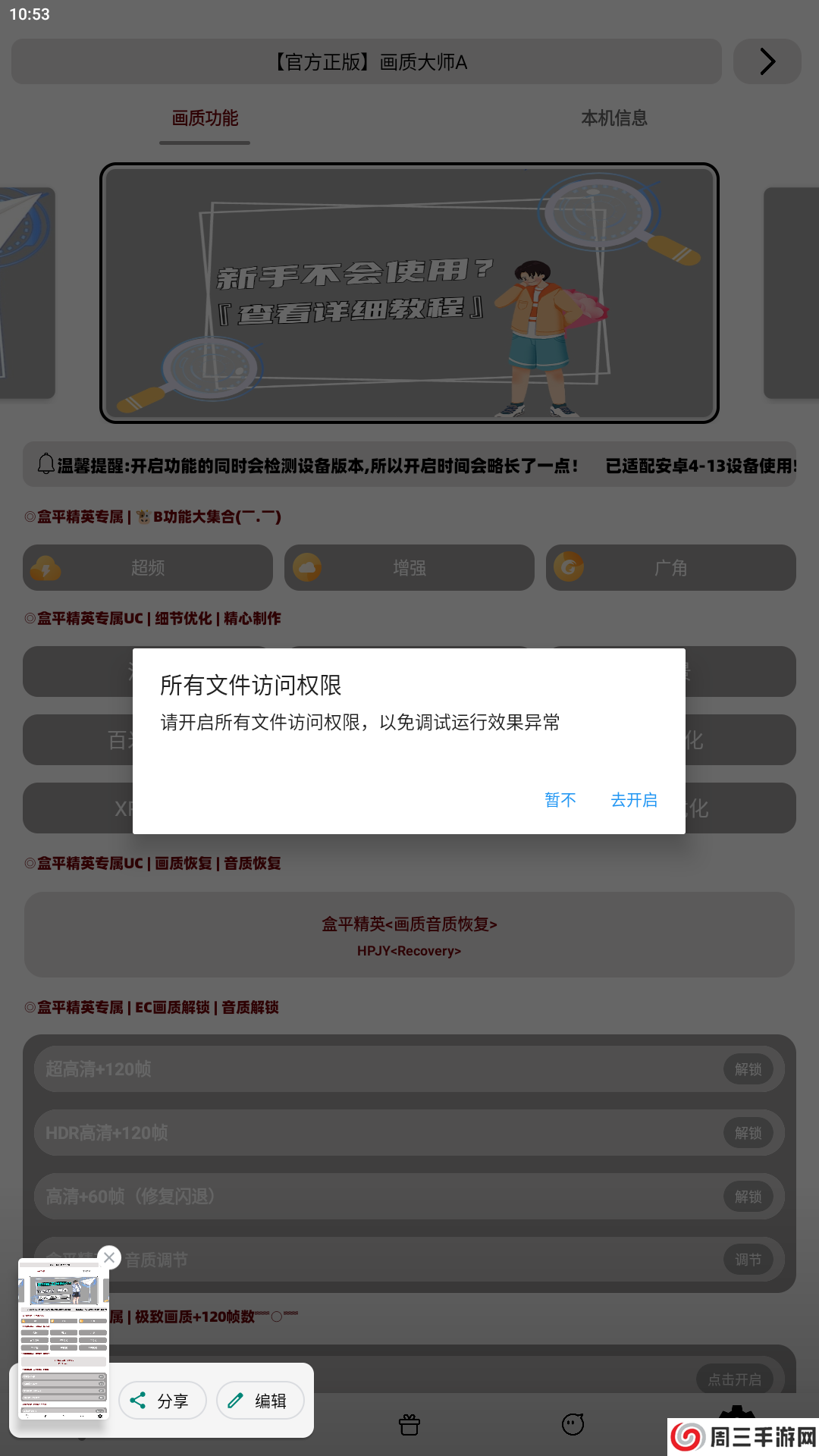 2、点击百米除草功能,会弹出请求所有文件访问权限,点击去开启。