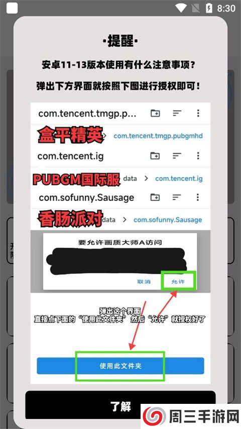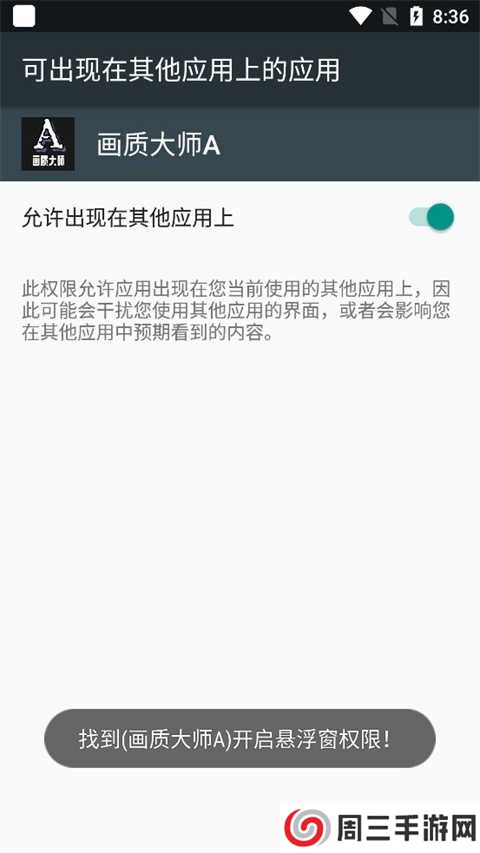 4、滑动应用列表,找到【画质大师A】,点击选择【始终允许】,即可开启悬浮窗。