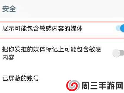 5、打开展示可能包含敏感内容的媒体右侧按钮,就可以查看限制内容了。