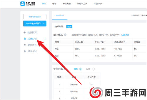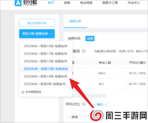 1、进到好分数教师版网页版登录后就可以在这里切换不同的班级。