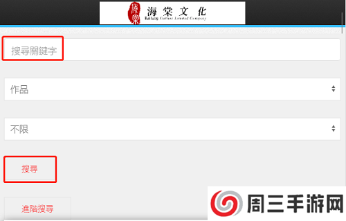 4、随后会展开搜索框,输入关键字可以直接搜索,选择“作品/作者”搜索,也可以不输入关键字,设置“不限”小说类型来模糊搜索;