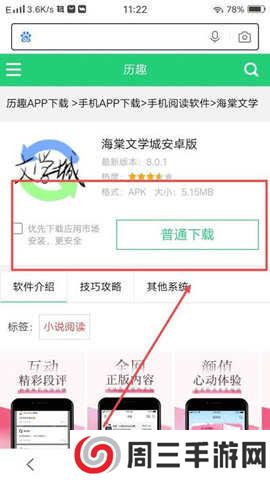 1、在手机上点击下载海棠文学城APP,点击下载。