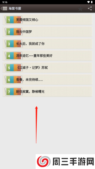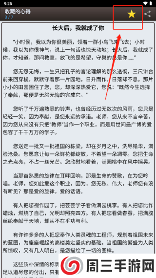 3、点击想要取消收藏的篇幅,如《长大后,我就成了你》,点击图示“黄星”位置