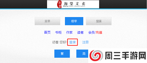1、打开海棠线上文学城,点击左上方的四道横杠