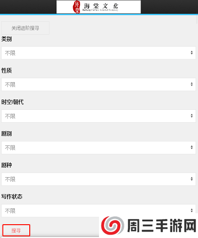 5、如果想要搜索更多类型的小说,可以点击“进阶搜索”,设置类别、性别、时空/朝代、剧别、剧种、写作状态等,点击“搜索”查找;