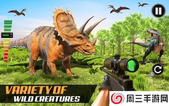 《恐龙狩猎野生动物》是一款结合了冒险、生存与射击元素的动作游戏。玩家将穿越回史前时代,面对各种凶猛的恐龙和其他野生动物,展开一场场惊心动魄的狩猎之旅。游戏以其逼真的画面、紧张刺激的狩猎体验以及丰富的游戏内容,为玩家带来了无与伦比的沉浸式游戏享受。