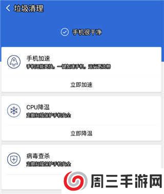2、之后一键点击清理即可清理手机中的*,然后点击手机加速;