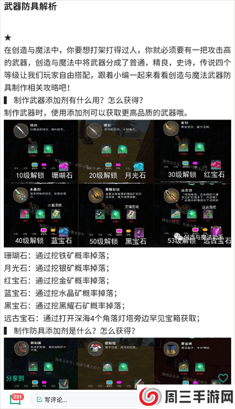2、你可以选择自己需要了解的进行查看,例如新手攻略里的武器防具解析,你可以看到武器的获取、制作等。