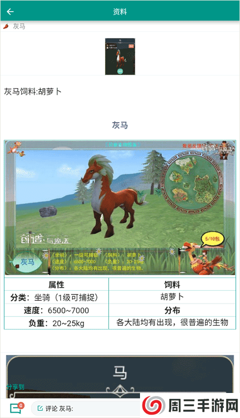 5、例如灰马,它所需要的饲料是胡萝卜,还可以看到其属性值等。