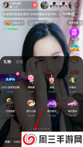 3、充值完毕后返回礼物选择窗口,选择你想要打赏的礼物,然后点击送礼就ok了。