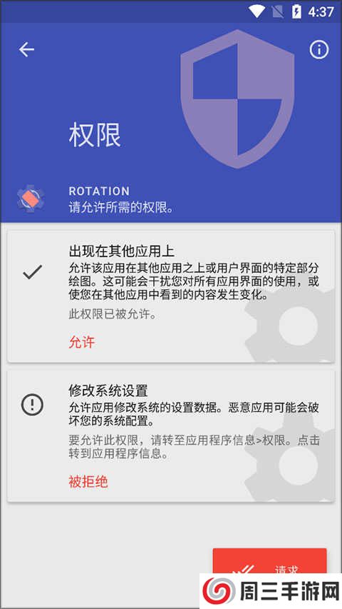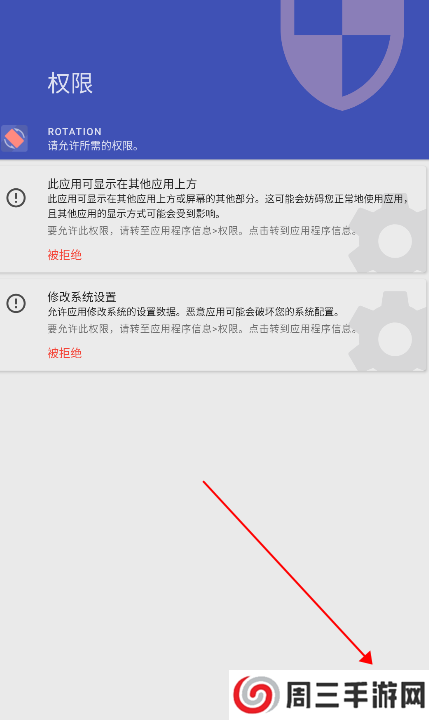 2、首次进入软件以后会需要获取对应的权限,都点击允许,然后点击“强制横屏”和右下角的“启动”。