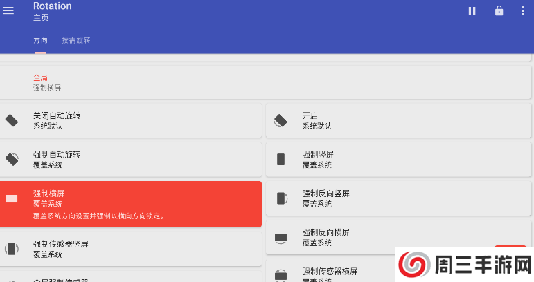 屏幕方向管理器(Rotation)怎么让游戏横屏?