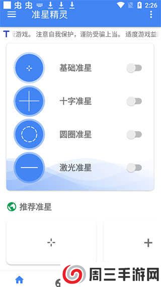 1、根据需求选择准星,拥有基础准星、十字准星、圆圈准星、激光准星等。