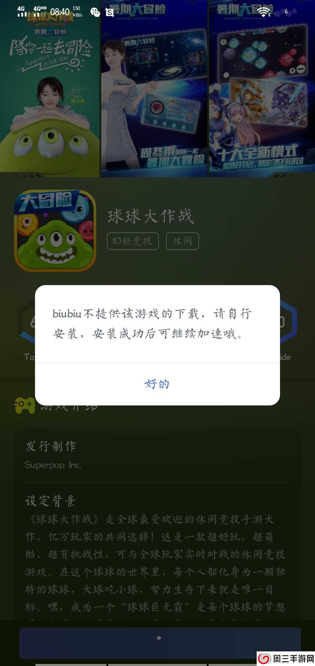 如果玩家手机中未安装球球大作战,可以在biubiu加速器首页的右上方直接搜索下载游戏。若无法下载游戏,可到自己的软件商城中下载。