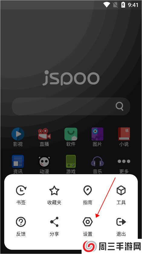 主页面点击顶部的“聚神铺”标题或者点击放大镜即可,进入搜索界面有非常多的搜索引擎,选择需要就可以搜索,默认百度搜索,而且右边第一个按钮可直接网址输入,第二个按钮是识图
