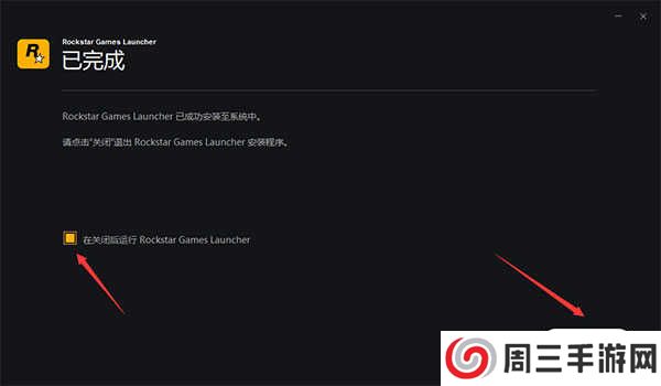 5、软件安装好了,选择关闭后运行Rockstar games launcher应用。