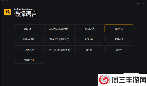 在趣致软件园下载r星游戏平台的压缩包,解压并双击进入如下界面,用户需要根据自己需求进行语言的选择