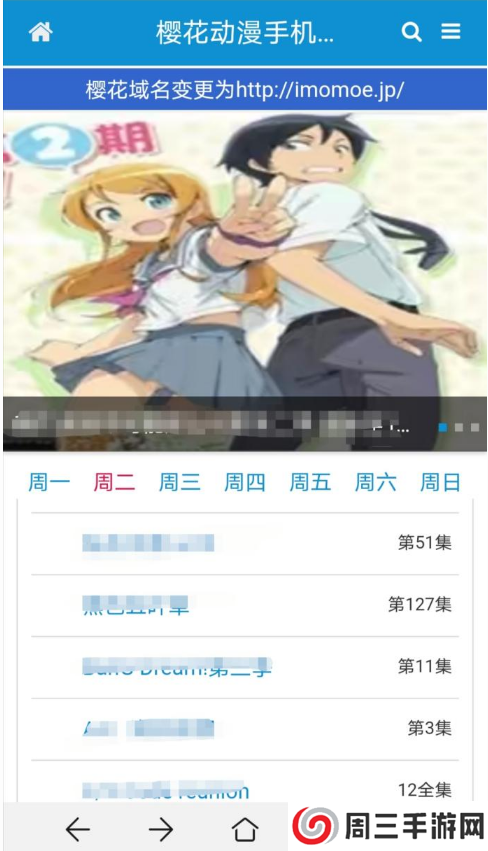 1、打开手机浏览器,进入樱花动漫官网(http://www.imomoe.in)