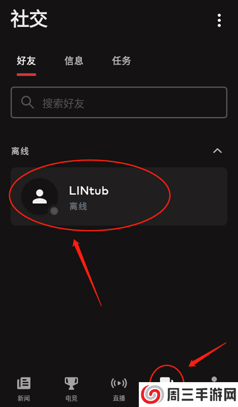 1、点击【社交】内的好友。
