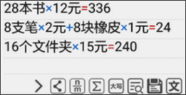 在算式中插入备注文字,点击等号可以进行混合计算。插入文字和混合计算实现了便用户备注重要的计算记录。