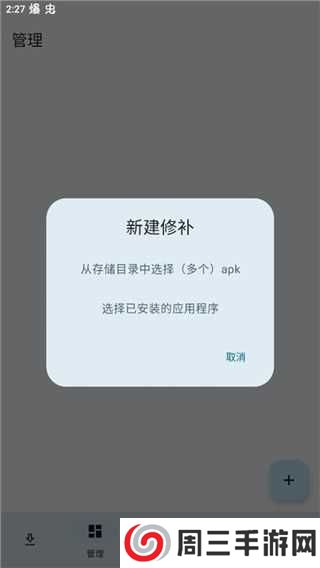 新建修补时可从存储目录中选择apk或选择已安装的应用程序