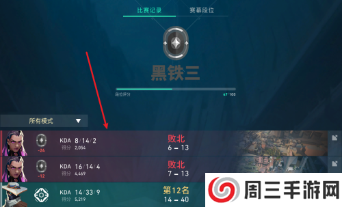 4、打开掌盟,找到绑定的无畏契约角色信息,然后点击战绩详情,在里面就能找到匹配过的玩家战绩了。